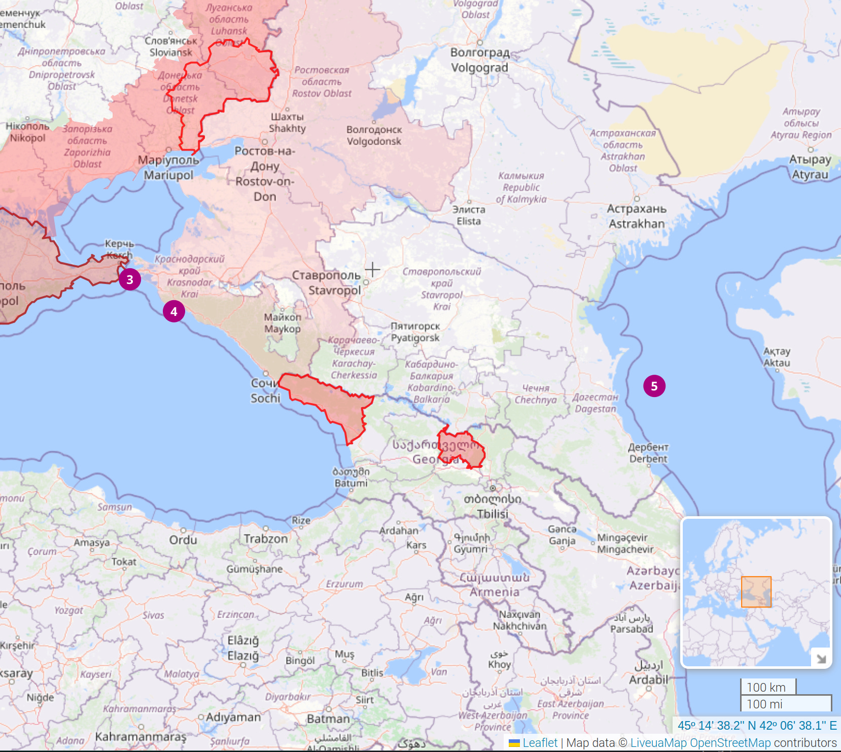 13. A co na to Ukraina? Ukraina poczyna sobie całkiem skutecznie i efektywnie. O tym, że prawdopodobnie udało się uszkodzić okręt podwodny, stacjonujący w Noworosyjsku (znacznik „4”), czytaliście w wpisie Marcina Ogdowskiego - tym razem dronem wodnym. Natomiast drony latające kilka razy odwiedziły rosyjskie instalacje wydobywcze… na Morzu Kaspijskim („5” - bardzo w prawo)! Przy okazji oberwało się też jakiejś rosyjskiej jednostce patrolowej, ale nie wiadomo, jak mocno.