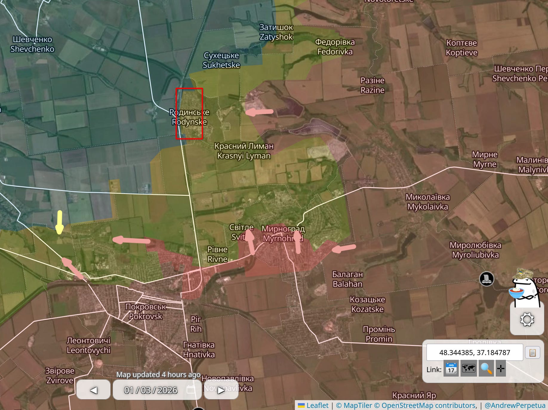 17. Jeśli chodzi o Pokrowsk to Rosjanie nadal szturmują okolicę. W ciągu ostatniej doby Perpetua zaznaczył takie postępy, jak widzicie na dole mapy - łącznie z tym językiem, który wdarł się w północną część zabudowań Pokrowska. Wcześniejsze rosyjskie postępy w kierunku Rodyńskiego zaznaczyłem czerwonym prostokątem.